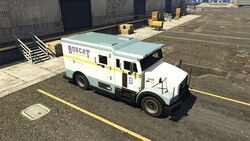 이 트럭은 본질적으로 GTA V에 등장하는 눈 덮인 스타케이드의 "깨끗한" 기본 모델로 나타납니다. 흰색과 회색/연한 파란색 디자인에 밥캣 시큐리티 상징이 적용되어 있습니다. 모델 자체는 표준 시큐리카와 동일하지만, 앞 범퍼에 GTA IV와 Grand Theft Auto V의 원본 버전에서 시큐리카에 있었던 것과 유사한 독특한 빨간색 마커가 특징입니다. 이 기능은 GTA V 확장판의 표준 그루페 섹스 스타케이드에는 없습니다.