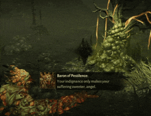 • 역병의 남작: 네 분노가 네 고통을 더욱 달콤하게 만드는구나, 천사여.
