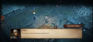 죽음의 구속(DIABLO)디아블로 이모탈폭풍지대 부가 퀘스트입니다. 이 퀘스트는 폭풍지대 성채 안뜰 남쪽 지역에 나타나는 브루스와 대화하면 시작됩니다.[1]