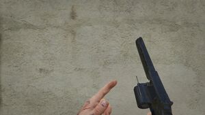 > "미친 코뿔소도 한 방에 쓰러뜨릴 수 있는 저지력을 가졌으며, 탄이 떨어지면 그대로 휘둘러 때려잡을 수 있을 만큼 묵직한 권총." - 아뮤네이션소셜 클럽 설명.
