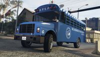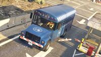 - 이 버스는 "길을 잃다" 미션에서도 볼 수 있습니다. 플레이어가 알더니 주 교도소에 침입하고 탈출할 때 나타납니다. 탑승은 불가능하지만, 획득하는 것은 가능하며 시간과 인내심이 필요합니다. 플레이어가 시설을 떠나라는 지시를 받을 때, 게이트를 나가지 않고 오토바이를 떠나야 합니다. 그런 다음 버스가 주차된 곳에 카메라를 고정한 채로 무거운 차량을 가져가야 합니다 (어떤 차량이든 버스를 밀 수 있지만, 패트리어트나 카발케이드 같은 SUV가 더 쉬울 것입니다). 그 후, 버스를 게이트 밖으로 밀어내고(필요하다면 오토바이를 옮겨가며), 두 차량이 모두 밖에 나오면 오토바이를 타고 시설 밖으로 운전해야 합니다 (주의: 다시 들어갈 경우 별 3개의 수배 레벨이 발생합니다). 플레이어는 로스트 MC 클럽하우스까지 차량을 계속 밀어야 합니다 (도난 차량의 후면으로 미는 것을 권장합니다. 손상을 피하기 위해서). 버스가 너무 멀리 떨어지거나 오토바이가 너무 멀리 떨어지거나 심하게 손상되면 미션이 실패하기 때문에 오토바이와 차량을 번갈아 가며 사용해야 합니다. 클럽에 도착하면, 버스를 주차장에 놓고 도난 차량을 빼내고 오토바이를 타고 미션을 완료해야 합니다. 게임을 완료하고 주인공을 조종할 수 있게 되면, 플레이어는 클럽하우스로 가서 차량을 운전할 수 있습니다. 제대로 되었다면 교도소 버스가 그곳에 주차되어 탑승 및 운전이 가능할 것입니다.