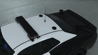이 차량은 고속도로 순찰대에 의해 운용되며, 플로리다 고속도로 순찰대의 흑갈색 투톤 도색을 기반으로 하는 것으로 보입니다. 트렁크에는 레오니다 인장으로 보이는 문장이 있고, 앞 펜더에는 노란색 표시가 있습니다. 앞 유리 위에는 내부 비상등이, 뒷좌석 선반에는 교통 자문 라이트바가 장착되어 있습니다.