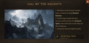 고대의 부름은 디아블로 이모탈의 얼어붙은 동토 지역에서 진행할 수 있는 지역 이벤트입니다.
