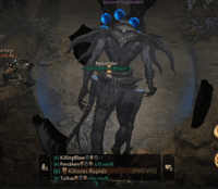 부활한 이후에는 고대 악몽(이벤트)의 보스로 등장합니다. 이때도 어둠 기반의 회오리와 같은 수도사 기술 일부를 유지합니다.[3]