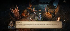 • 자탐: 나는 오랫동안 이런 광신도들을 사냥해 왔소. 내 고향에도 사악한 심장을 가진 자들은 넘쳐나지. 놈들의 냄새를 찾아내겠소.