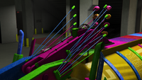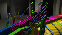 - 스티키 옵션(보라색 깜박이는 불빛)은 표면에 많은 양의 끈적이는 물질을 뿌려 그 위를 지나는 차량의 속도를 늦춥니다. 이는 차량이나 플레이어 모두에게 손상을 주지 않습니다.