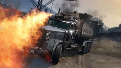 - 두 번째 화염방사기를 장착할 수 있으며, 이는 트럭 뒷면의 유조 탱크 후면에 부착됩니다. 일반 화염방사기와 동일하게 작동하며 승객이 사용할 수 있습니다. 두 명의 플레이어가 탑승하면 두 화염방사기는 사용 시 실질적으로 두 배의 피해를 줍니다.