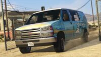 이 밴은 흰색 지붕과 네 가지 다른 리버리와 함께 제공됩니다. 또한 커튼이 열려 있거나 닫혀 있는 상태로 스폰됩니다. 업데이트 이후(언제 변경되었나요? PS3 및 PC의 향상된 버전에서도 발생합니다) 구매한 버전은 흰색 대신 검은색으로 도색됩니다. 이는 재도색할 수 없습니다.