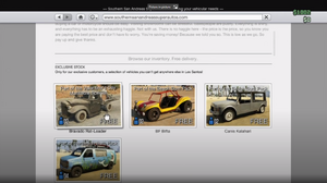 발렌타인 데이 대학살 스페셜 업데이트 출시 당시의 남부 산 안드레아스 슈퍼 오토 웹사이트로, 루프랙과 서핑보드가 달린 파라다이스가 묘사되어 있습니다. - ↑