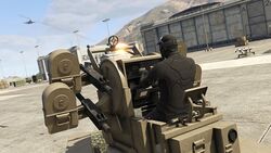 • 듀얼 20mm 대공포: 세 번째 옵션은 라이노 탱크 (HD 유니버스)의 주 무기 및 APC의 기본 무기와 유사하게 작동하는 이중 대공포 포탑입니다. 하지만 이름이 지대공 전투만을 암시함에도 불구하고, 이 대공포는 게임 전체에서 두 번째로 가장 강력한 무기입니다 (한 방에 모든 것을 파괴할 수 있는 궤도 캐넌만이 이를 능가합니다). 피해량은 폭발 반경 내에서 RPG (HD 유니버스) 6발과 동일하며, 라이노 탱크를 한 발로 파괴할 수 있고, TM-02 칸잘리와 중무장한 병력 수송 차량 (과거 인서전트나이트샤크)을 두 발로 파괴할 수 있습니다. 또한, 이동식 작전 본부 트레일러와 운전자가 탑승한 팬텀 커스텀/하울러 커스텀을 파괴하는 데는 네 발이 필요합니다. 발사 속도는 분당 112.5발이며 0.5초마다 동시에 발사할 수 있지만, 각 총마다 2초의 '재장전' 쿨다운이 있습니다 (하지만 지속적인 사격을 위해 최소 1초 간격으로 사격 시간을 맞출 수 있습니다). 대공포는 높은 발사체 속도 (522m/s 또는 1879.2km/h)를 가지고 있어 유효 사거리 (290미터) 내의 적에게 반응할 시간을 거의 주지 않습니다.