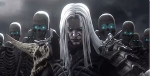 "죽음이... 우리의 세계를 황폐화했다. 그리고 우리를 지탱하던 균형은... 사라졌다. 우리는 이런 날이 올 것을 두려워했다. 대지가 파괴되고 빛의 용사들이 더 이상 도움이 필요한 이들을 구할 수 없을 때를. 하지만 나는 구할 것이다. 나는 그들이 다룰 수 없는 힘을 다루기 때문이다. 새로운 죽은 자들의 군대가 나의 명령에 따라 일어날 것이다. 균형을 위협하는 자들이여... 경계하라."