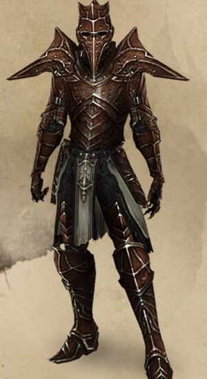 카란의 칙령에 따라 모든 사제는 죽음에 대한 지배의 상징으로 갑옷에 뼈를 장식해야 합니다.[24] 새로 서임된 사제들은 기본 복장을 입는데, 이는 얇은 피혁만큼이나 보호해주며 가벼운 무기를 보관할 수 있는 어두운 옷입니다. 승리한 적들에게서 얻은 것들을 걸치기도 합니다. 노련한 강령술사는 더 위험한 적을 마주하기 때문에, 저항력이 있는 어깨 보호대, 가죽 튜닉, 정강이 보호구로 신체의 노출된 부위를 더 세심하게 보호합니다. 라트마의 정예 사제들은 뼛속까지 칼슘화된 뼈와 골수로 뒤덮인 공포스러운 모습이며, 가장 끔찍한 악마들의 공격도 견뎌내는 두꺼운 갑옷으로 온몸을 감쌉니다.[12]