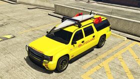 이 SUV는 노란색 차체에 빨간색 "LIFEGUARD" 표시와 후면 수납칸 문에 로스 산토스 소방국 표시를 포함한 수많은 마킹이 특징입니다. 파일에 따르면 이 SUV는 흰색으로 스폰되지만, 이는 문 내부 트림과 엔진룸에서만 보입니다. 이 SUV는 또한 일반 그레인저와 동일한 휠 디자인을 사용하며, 로스 산토스 커스텀에서 볼 수 있는 "듄 배셔" 오프로드 림의 변형이지만, 진주색(이슬 노란색으로 설정됨)에 의해 약간의 틴팅/음영이 적용됩니다.