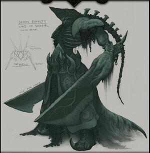 - 라카노트는 블리즈컨 2011 패널에서 공개된 아즈모단의 초기 디자인이었습니다: 다른 버전에서는 거대하고 전사 같은 모습이었습니다. 인간형이지만 손에는 커다란 식칼 같은 무기를 들고 있었고, 상어 같은 머리에 긴 해골 꽁지머리를 하고 있었죠. 마치 가죽을 벗긴 상어처럼요. 개발진은 이 버전이 멋지고 공포스럽다고 생각했지만, 죄악의 군주라는 설정과는 맞지 않는다고 판단했습니다.