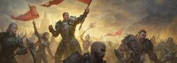 | "불타는 지옥(DIABLO)의 군대가 사악한 의도가 분명한 계략을 위해 병력을 소집하고 있습니다. 모험가(DIABLO)여, 깃발을 높이 들어 동료를 모으십시오. 여러분의 문장(Clan)에 도움을 요청하여 어둠의 물결을 물리쳐야 합니다!" | — | — 이벤트 설명 (출처: 블리자드 공식 홈페이지) |