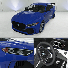 차량은 차체, 림의 바깥 부분 및 내부 스티칭에 기본 색상이 도색되며, 전면 수평 분할 및 루프 패널에는 보조 색상이 사용됩니다. 대시보드, 경적 캡, 문 일부 및 시트에 적용되는 트림 색상도 내부를 위해 제공됩니다. 림은 로스 산토스 커스텀에서 볼 수 있는 "랠리 마스터" 튜너 림과 유사하지만, 직경이 약간 더 크고 로우 프로파일 타이어로 감싸져 있습니다.