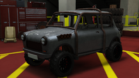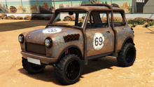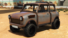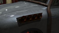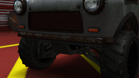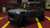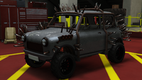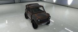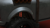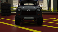 색상 배분은 일반 버전과 다소 유사하며, 주요 색상은 차체, 엔진 커버 및 스티어링 휠의 스티치에 적용되고, 보조 색상은 헤드램프 주변의 내부 트림, 보닛 핀, 공기 필터, 스파크 플러그 배선 및 에어컨 유닛 주변 디테일에 적용됩니다. "후방 키네틱 박격포" 개조의 웨빙에는 트림 색상도 제공되며, 이는 갈색으로 설정됩니다. 순정 휠은 로스 산토스 커스텀에서 사용할 수 있는 "네비스" 오프로드 휠과 유사하며, 높은 프로파일 타이어로 감싸져 있습니다. 림은 또한 전용 색상을 지원하며, 개조 시 노란색으로 설정됩니다.