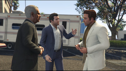 펠로시에게 돈을 뜯길 생각이 없었던 리처즈는 마이클 드 산타에게 펠로시를 위협하여 매킬로이와 보들레르를 다시 촬영장으로 복귀시키라고 요청합니다. 마이클은 펠로시를 두들겨 패고 밀턴과 안톤을 헬리콥터에 태워 거칠게 비행하며 그들을 설득해 작업에 복귀시킵니다. 스튜디오로 그들을 데려온 후, 마이클은 밀턴에게 리처즈에게 사과하도록 강요합니다. 매킬로이는 이 일에 대해 자신의 블리터 계정에 글을 올립니다.
