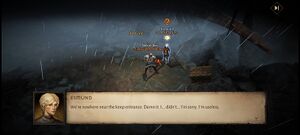 - 에스문드: 요새 입구와는 한참 떨어진 곳이군. 젠장. 난... 대체... 미안해. 난 쓸모가 없어.