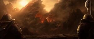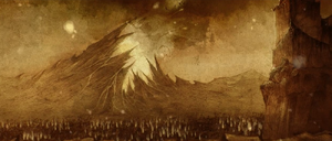 1285년에 요새의 난공불락함은 아즈모단(DIABLO)과 그의 죄악의 군대(DIABLO)가 아리앗 분화구(DIABLO)에서 남쪽으로 이동하면서 시험대에 올랐습니다.[6] 분화구 자체는 작전 기지 역할을 했습니다.[7] 이 시점에 요새의 주둔군은 본래 3,000명에서 1,000명으로 줄어든 상태였습니다.[1] 반면, 지옥에서 끊임없이 악마들이 합류하는 죄악의 군대의 규모는 사실상 무한했습니다.[8]