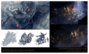• 스토리 측면에서 바스티온 요새는 인류의 운명을 결정지을 전투로 상황이 고조되면서 디아블로 III 이야기의 분위기 전환을 전달하기 위해 의도되었습니다.[7]