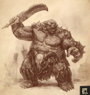 "이 땅딸막한 괴물들은 얼어붙은 동토의 아리앗 산 일대에서 패배한 창조주, 파괴의 군주의 깃발을 여전히 내걸고 있습니다. 왜 그들이 이미 폐허가 된 땅을 계속해서 파괴하고 피란민들을 사냥하는지는 미스터리로 남아 있습니다. 이것이 본능일까요, 아니면 더 거대한 의지일까요?"
