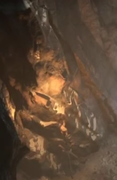 - 이 구역의 동굴 구간, 플레이어가 다음 지점으로 올라갈 수 있는 절벽 아래에서 정체불명의 생명체 해골을 발견할 수 있습니다.