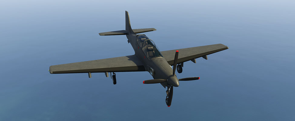 - 기관총: 첫 번째 옵션은 이중 기관총 포드 세트로, 밀수 작전 업데이트에 추가된 대부분의 항공기의 전면 기관총과 유사하게 작동합니다. 이 기관총은 조종사가 비무장 항공기 뒤에 머물러 있을 수 있다면 심각한 피해를 입힐 수 있으므로 공대공 교전에 이상적입니다. 차량에 가하는 피해는 헤비 스나이퍼보다 크며, 기본 피해량은 250(대 헤비 스나이퍼 216 및 Mk II 변형 230)이며, 양쪽 기관총은 분당 300발의 발사 속도를 가집니다. 최대 사거리는 250미터/820피트입니다. 그러나 총기 배치 때문에 너무 가까이 비행할 때 기관총이 동시에 목표물을 맞추기 어렵습니다.