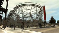 | 첫 번째 GTA IV 트레일러에 등장한 브로커 다리. | 파이어플라이 아일랜드에 위치한 스크리머 롤러코스터. |