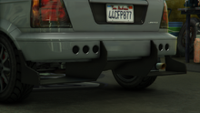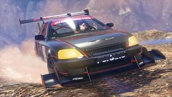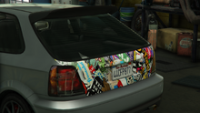 - 이 차량은 기본 색상으로 메탈릭 블랙 스틸/용암 레드 펄, 보조 색상으로 메탈릭 푸르스름한 은색, 그리고 "쇼핑 목록" 도색을 가지고 있었습니다. 독특하게도 이 차량에는 뒷유리에 순정 플라스틱 루프 스포일러가 없었는데, 이는 순정 스포일러를 제거하는 옵션이 개조로 제공되지 않기 때문에 합법적으로 스포일러 없이 차량을 얻을 수 있는 유일한 방법이었습니다. 플레이어가 차량을 개조할 때 "스포일러" 탭을 선택하면 순정 스포일러가 자동으로 복원됩니다.