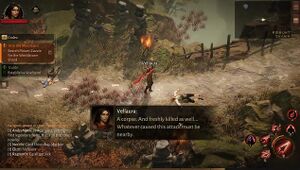 - 플레이어: 시체다. 그것도 갓 죽은 상태군... 이 공격을 저지른 무언가가 근처에 있음이 분명해.