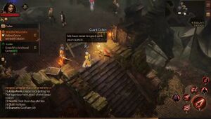 - 틀:Imm: 당신인가. 여행 중에 고행자를 만날 줄은 몰랐군. 자베인 산의 소란을 잠재우기 위해 파견된 다른 수도사가 있다는 이야기는 듣지 못했는데. 날뛰는 카즈라들이 당신을 성가시게 하지는 않았겠지?