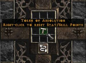 면죄의 징표(Token of Absolution)는 디아블로 II: 파괴의 군주의 틀:P2 패치에서 도입된 특별한 소모성 아이템입니다. 이 아이템을 사용하면 아카라가 해주는 것과 동일하게 캐릭터의 모든 능력치와 기술 포인트를 초기화할 수 있습니다.
