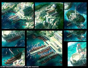 2008년 블리즈컨에서 열린 디아블로 III 로어 및 아트 패널에서 스코보스는 게임 플레이 중 직접 방문할 수 없지만, 게임 세계관 내 캐릭터들이 언급할 수 있도록 내부적으로 상세히 설정되었다고 밝혀졌습니다.[17] 섬들에 대한 언급은 5막에서 티리엘과 로라스 나르가 섬으로 파견된 호라드림 원정대가 돌아오지 않았다고 대화하는 내용에서 나옵니다.