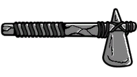 이 도끼는 전통적인 방식으로 제작된 틀:WP처럼 보이며, 돌로 된 도끼날이 가죽과 깃털로 장식된 나무 자루에 연결되어 있습니다. 역사적 복제품일 가능성이 높지만, 게임 내에서 가장 오래된 형태의 무기입니다.
