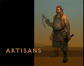장인(Artisans)은 디아블로 III에서 처음 도입된 새로운 등급의 NPC입니다. 2010년 게임스컴에서 처음 공개된 장인들은 캐러밴의 일원으로서 플레이어를 위해 아이템을 제작해 줍니다. 몬스터를 처치하면 장인들이 배울 수 있는 새로운 제조법(도안)을 획득할 수 있습니다. 특정 제조법을 배운 후에는 플레이어가 필요한 재료와 금화를 가지고 있으면 장인이 해당 아이템을 제작해 줍니다. 재료는 아이템을 분해하여 얻을 수 있으며, 이 과정은 아이템을 구성 요소로 되돌립니다. 분해는 캐러밴에 있는 대장장이를 통해 수행해야 합니다. 제작된 아이템은 고정 속성과 무작위 속성을 모두 가집니다.