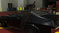 - 차량에 녹슨 도색을 유지하고, 돌격 무기를 "없음"으로 선택하여 스쿠프를 제거하고, 후방 키네틱 박격포 무기를 설치하면 로드 워리어에서의 차량 모습과 유사하게 만들 수 있습니다. 이렇게 하면 트렁크가 제거되어 맥스가 두 번째 영화에서 차량 뒤에 설치했던 트윈 가스 탱크와 비슷한 모습이 됩니다.