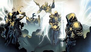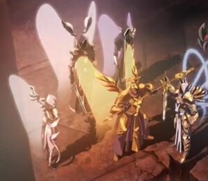 | 아우리엘 | 희망의 대천사 | 의회의 이성적인 목소리이자 외교의 중심이며, 의회의 유일한 여성 구성원이다. 이세라엘과 가장 가깝다. 자비롭지만, 필요할 때는 기꺼이 싸움에 임한다. 희망의 끈 알마이에슈를 사용한다. 대응하는 영역은 희망의 정원이다. | |