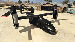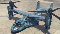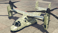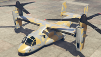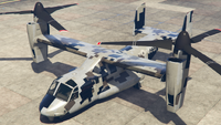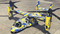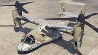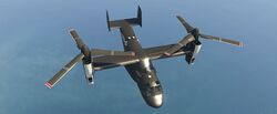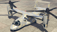 이 항공기에는 최대 3개의 캐논 터렛(전면 터렛은 카메라 포드를 대체)과 폭탄을 장착할 수 있습니다. 산 안드레아스 용병들 업데이트 기준으로, 20mm M197 발칸 개틀링 건과 유사한 두 개의 미니건 포드와 유도 미사일 포드로 추가 업그레이드할 수 있습니다.