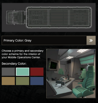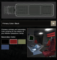 - 많은 진입 가능한 건물, 어벤저, 테러바이트와 마찬가지로, 이 차량의 내부는 "건물"로 묘사된 것과 다릅니다. MOC의 내부는 기본적인 차량만큼도 넓지 않으며, 선택된 격납고에 관계없이 동일하게 유지됩니다. 또한, 트레일러 길이의 약 절반 정도입니다.