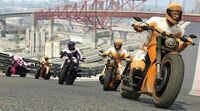 The Vespucci Job (Remix) The Vespucci Job의 리믹스 버전입니다. 러너는 기존 이씨 클래식 대신 영화 테마 차량을 사용하며 15개의 체크포인트를 수집해야 합니다. 최대 3명의 요격 팀은 기존 경찰 요격기 대신 다양한 차량을 사용하여 러너를 저지합니다.