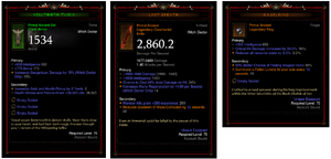 원래 원시 아이템은 고대 아이템보다 더 높은 능력치 범위를 가지도록 계획되었으나, 이 아이디어가 폐기되고 완벽한 수치(최대치)를 가지는 것으로 대체되었습니다.