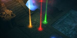 드랍 시 각 전설 아이템은 독특한 소리를 내며 미니맵에 별 모양 아이콘으로 표시됩니다. 또한 각 아이템은 밝은 빛기둥으로 강조되어 놓치기 어렵습니다.