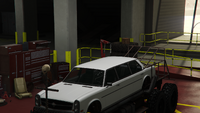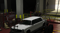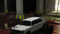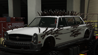 이 차량은 글렌데일의 리무진 변형으로 묘사되며, 6륜 트럭 섀시에 장착되어 녹슬고 낡은 외관을 가지고 있습니다. 전면에는 원래 범퍼 외에 여러 개의 범퍼가 있으며, 아래쪽은 트래시마스터의 파생형이고, 중간은 알려지지 않은 차량의 것, 위쪽은 헤르메스의 것입니다. 측면에서는 차량의 차체가 일반 모델과 동일한 특징을 가진 3박스 디자인을 가지며, 섀시에는 큰 사이드 스텝, 그 사이에 연료/오일 탱크, 그리고 차량 후면 아치 근처에서 위쪽으로 꺾인 두 개의 큰 배기 파이프가 측면을 따라 나 있습니다. 차체 후면 부분은 일반 모델과 동일하지만, 트렁크 덮개가 제거되어 강철 케이지와 같은 구조물이 섀시 후면까지 확장될 수 있는 공간이 마련되었습니다. 내부는 일반 모델과 동일하며, 리무진 레이아웃에 맞게 당연히 변경되었습니다.