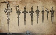 설명 "내 방탕한 딸 릴리트가 낳은 모든 사생아들의 심장이 하나로 모여 있다면, 이 검을 찔러 넣어 그들 모두가 나의 무자비한 분노라는 선물을 맛보게 해주었을 텐데." - 메피스토가 이 검을 전달하며 불타는 지옥의 수석 대장장이 헤파스토에게 한 말