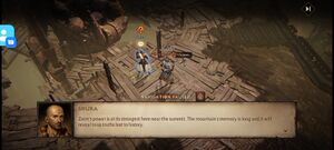 - 슈라: 마지막 순간까지 그분은 평화를 갈구하셨군요. 우리가 그분을 기려야 합니다. 그분이 봉인하려 했던 어둠을 잠재우죠. 환영 속에서 얻은 만트라가 우리 구원의 열쇠입니다. 마지막으로 한 번 더 도와주십시오.