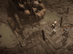 - 수도원 더 깊은 곳에서, 질서의 타락한 수행자가 충격파로 다리를 파괴합니다