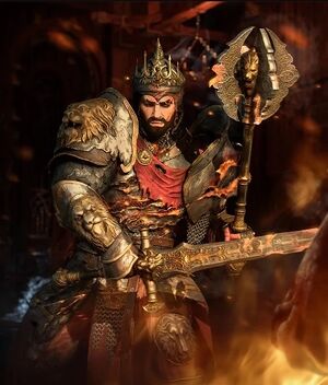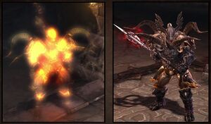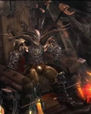 전투 중 그는 지옥불 반지와 유사한 용암 웅덩이를 생성하는 특별한 짓밟기 공격을 사용합니다. 전투가 끝나면 그는 다시 육체로 돌아갑니다.
