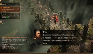 • 오자: 자카룸 십자군이 패배한 이후로, 자베인 산은 안개에 뒤덮여 버렸죠. 몸을 숨기기엔 더할 나위 없이 좋은 곳이에요.