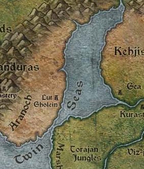 쌍둥이 바다(Twin Seas)는 사실 성역의 서부와 동부를 가르는 좁은 해협으로 나뉜 하나의 수로입니다.[1] 북쪽 바다는 서쪽의 아라노크와 동쪽의 케지스탄 사이의 장벽 역할을 합니다. 남쪽 바다는 대양으로 이어지며, 스코보스 제도가 위치한 곳입니다.[2]